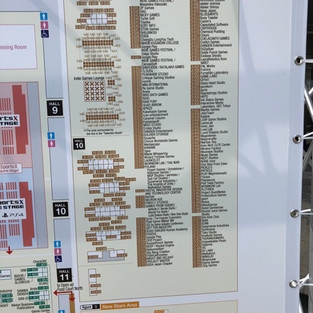 (From left to right: map of the main developer halls, the vr, e-sports, and indie area, and the list of indie developers.)